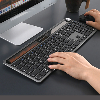 Solar Powered Blue Tooth 2.4 GHZ Wireless Keyboard Solar Light Powered for Computer Business Home Office